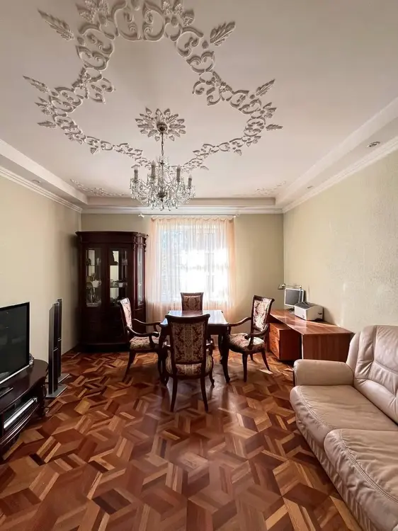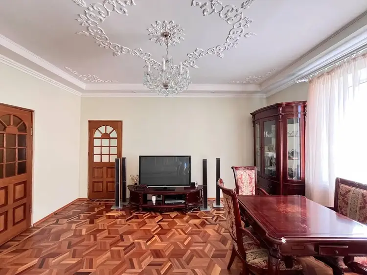 В квартире компактная, грамотная планировка. Выполнен качественный ремонт с элементами сталинского менимализма (липнин на потолке, паркет на полу, двери и мебель массив).