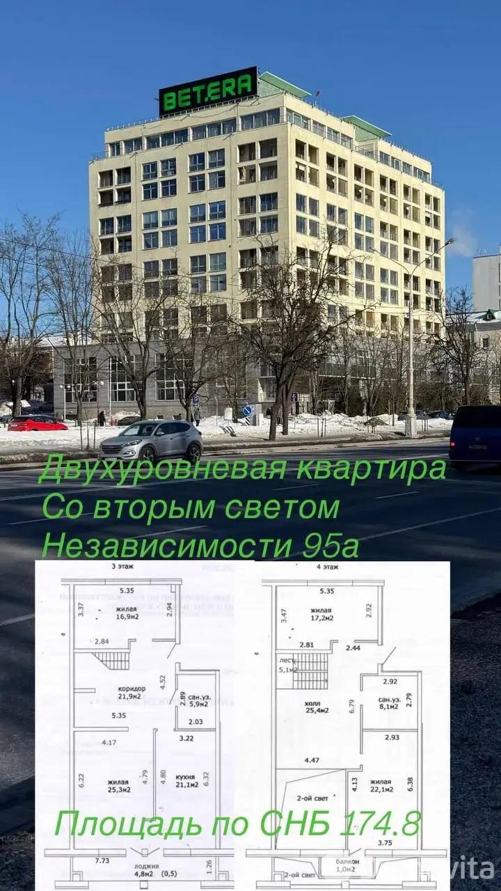 Продается новая просторная двухуровневая квартира СО ВТОРЫМ СВЕТОМ площадью по СНБ 174,8кв.м. (с возможность выкупа коридора в собственность на обоих этажах ),в элитном доме в самом центре Минска, Проспект Независимости, 95а эт3/4.Идеальное место, где Вас ждёт СЧАСТЛИВАЯ ЖИЗНЬ В КВАРТИРЕ МЕЧТЫ!