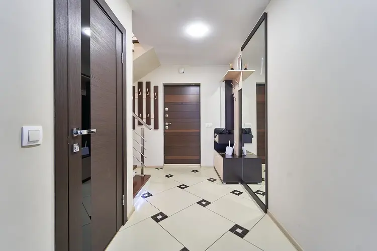 Общая площадь 130,5 просторная гостиная с кухней, три жилых комнаты, 2 санузла, гардеробные, лоджия. Окна на разные стороны дома.