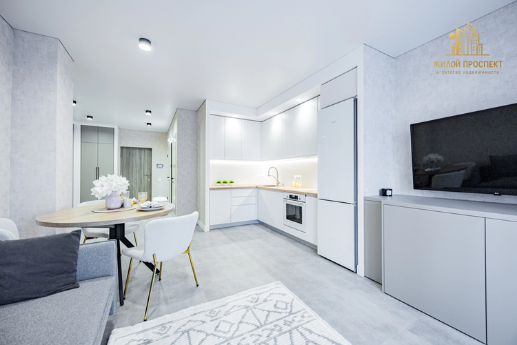 Современный ремонт выполнен в нейтральных теплых тонах с применением качественных, материалов.