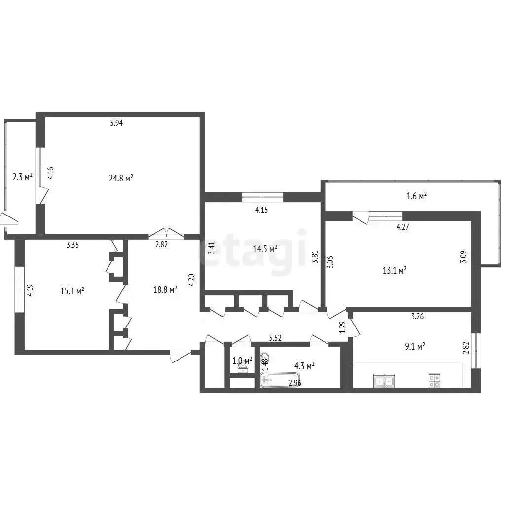 4-комнатная квартира 108,4 м2 в Центральном районе Минска, проспект Победителей, 43/2.
