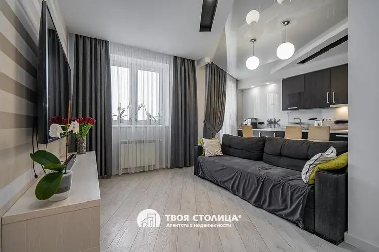 Квартира, расположенная на 7 этаже 9-этажного каркасно-блочного дома 2012 года постройки, идеально подойдет для большой семьи. Общая площадь составляет 91.5 кв.м, жилая – 57.2 кв.м, а просторная кухня – 13.6 кв.м. Высота потолков 2.75 м создает ощущение дополнительного простора и света. В квартире выполнен отличный ремонт, что позволяет заехать сразу после сделки.
