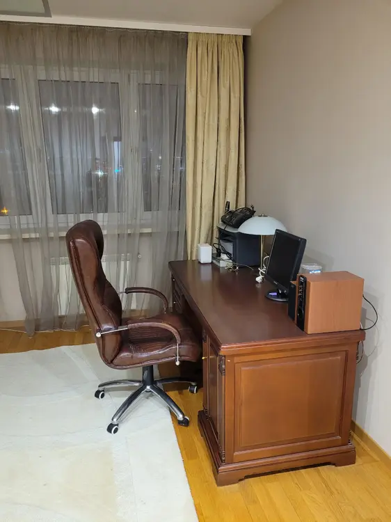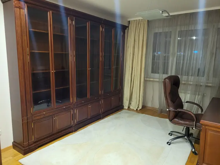 Светлая просторная квартира с шикарной планировкой: кухня-гостиная, две спальни, кабинет, гардеробная и два санузла. Кухня оборудована всей необходимой техникой: электрическая варочная панель, духовой шкаф, вытяжка, посудомоечная машина, холодильник. На полу паркетная доска, потолки комбинированные. Видеодомофон. Установленно 2 кондиционера.