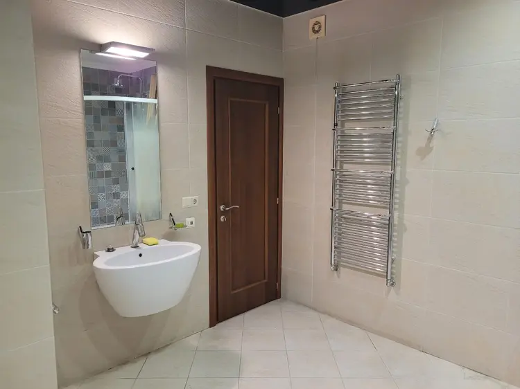 На этаже всего три квартиры. В доме два лифта: пассажирский и грузовой. Дом обслуживает товарищество собственников. Есть консьерж. По периметру и в парадной части подъезда установлено видеонаблюдение. Своя парковка под шлагбаумом.