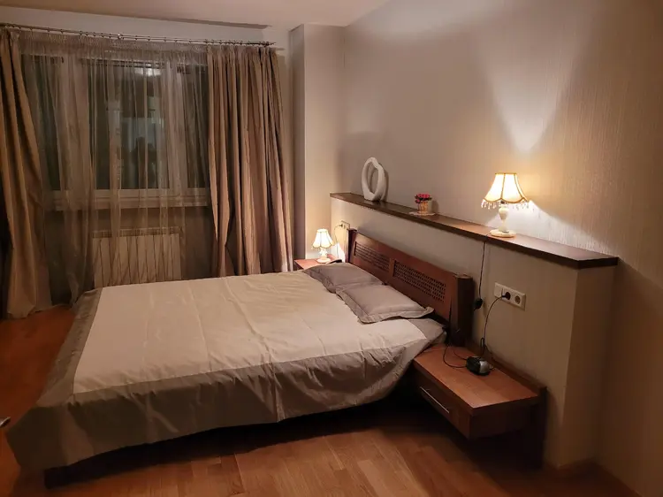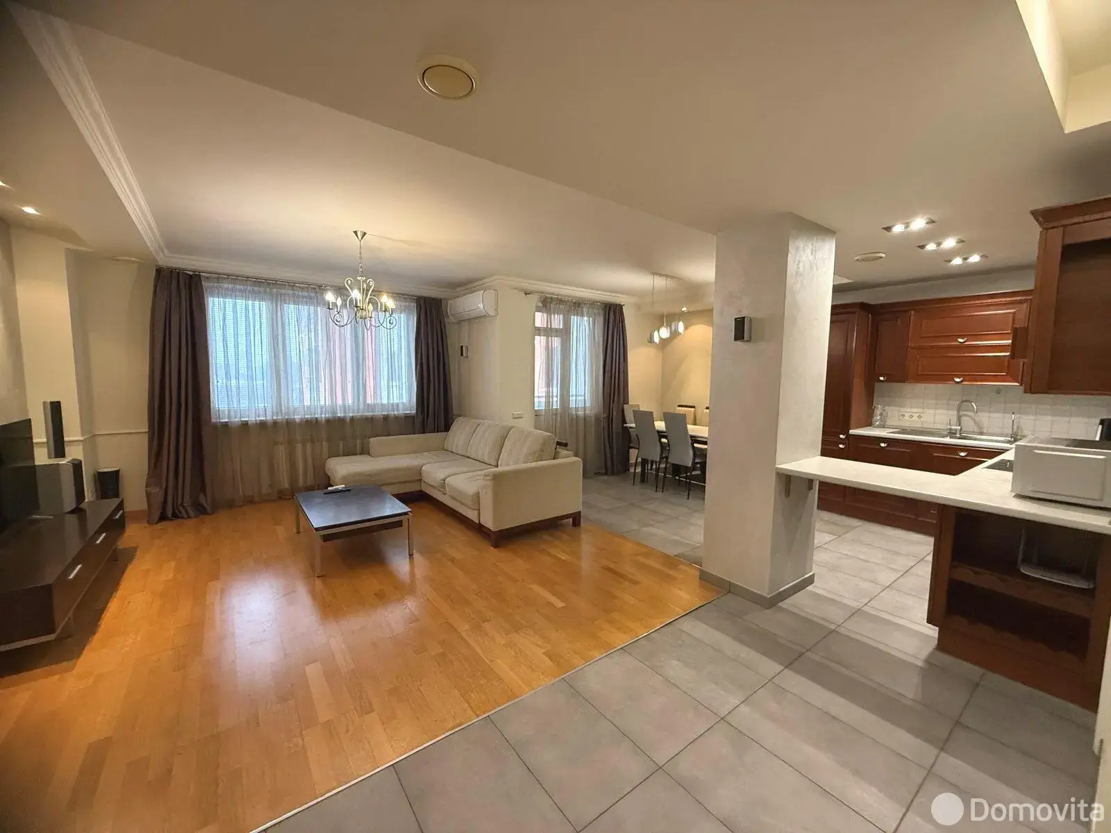 Светлая просторная квартира с шикарной планировкой: кухня-гостиная, две спальни, кабинет, гардеробная и два санузла. Кухня оборудована всей необходимой техникой: электрическая варочная панель, духовой шкаф, вытяжка, посудомоечная машина, холодильник. На полу паркетная доска, потолки комбинированные. Видеодомофон. Установленно 2 кондиционера.