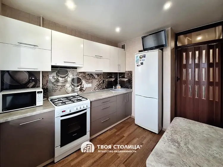 Отличный ремонт – квартира готова к заселению! Качественные отделочные материалы, свежеотшлифованный паркет выглядит как новый.