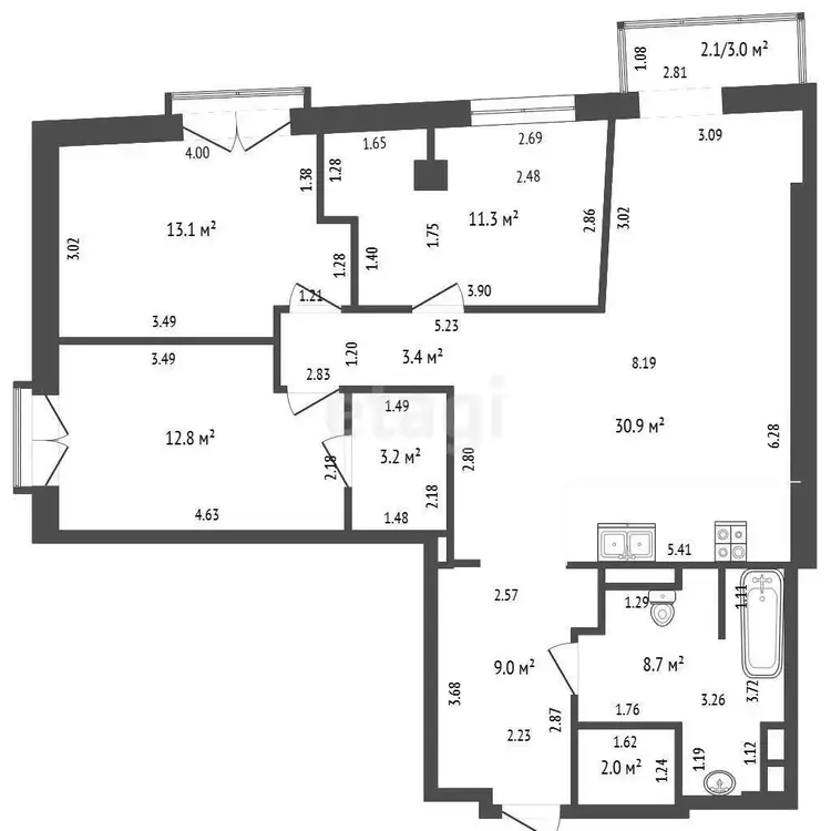 - в квартире 2 санузла, что максимально комфортно для большой семьи