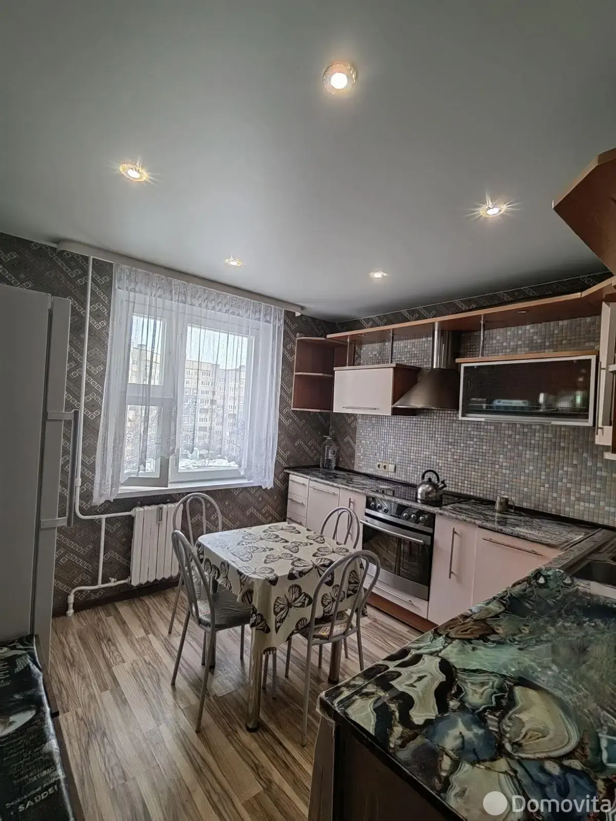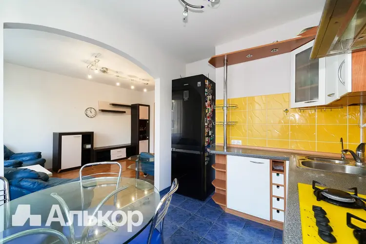 Кухонный гарнитур с качественной техникой. Кухню (10.5 кв.м.) можно соединить с комнатой (16.8 кв.м) получится шикарная кухня – столовая.