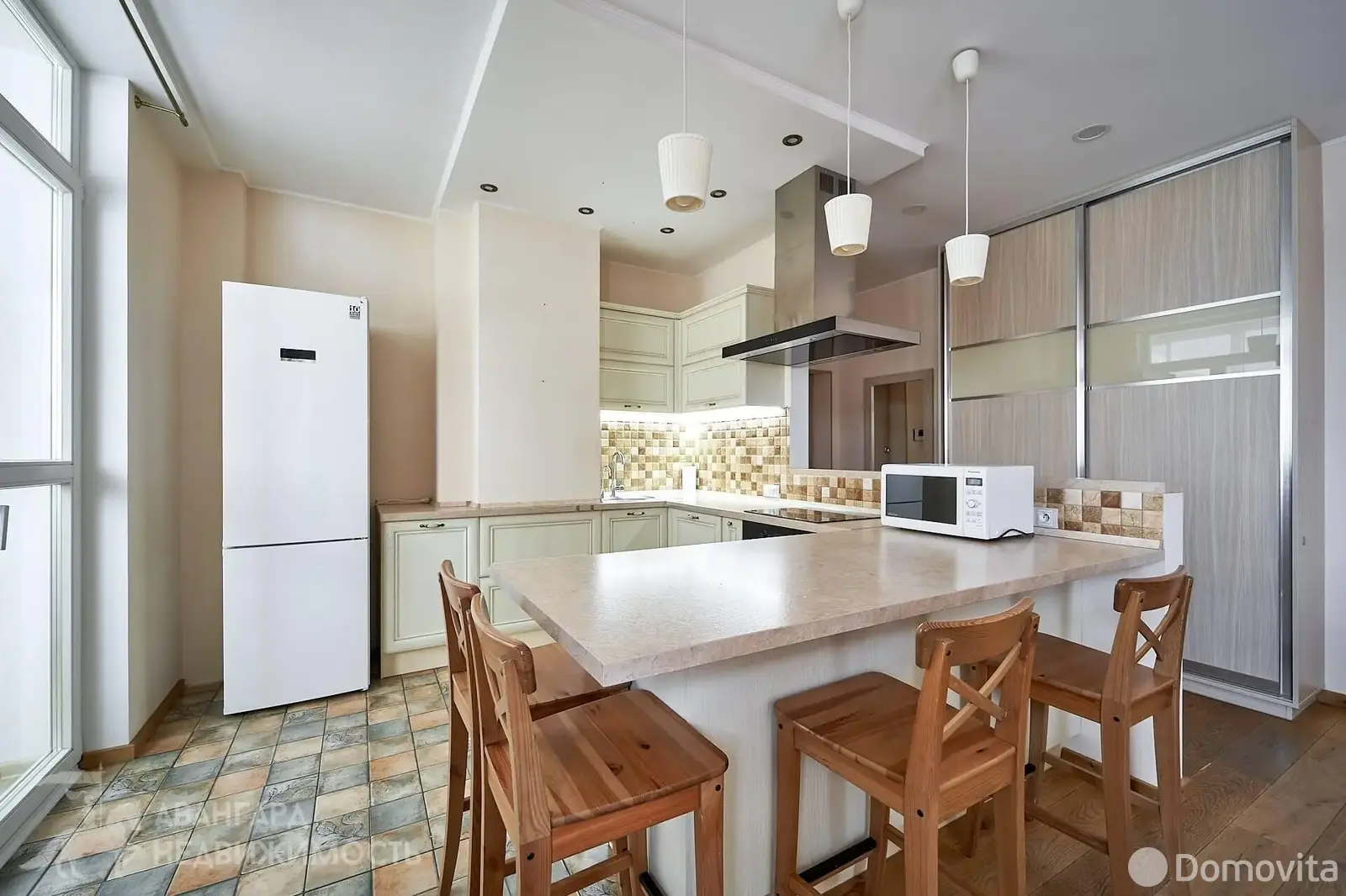 Ремонт по всей квартире выполнен в едином стиле. На полу паркетная доска из натурального дерева, потолки разноуровневые с подсветкой разных зон. Все окна нестандартные, увеличенные – что дает возможность бОльшему количеству дневного света проникать в квартиру. Вся мебель светлого цвета. Есть две отдельные детские комнаты, что очень актуально для семей с разнополыми детьми. И отдельная родительская комната. Второй сан узел позволяет с комфортом для проживающих решать ежедневные задачи.