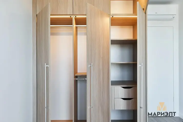 · Современная и функциональная планировка : много мест для хранения (в каждой комнате установлены шкафы, вместительная постирочная и гардеробная в спальне. Встроенная кухня (фурнитура Blum).