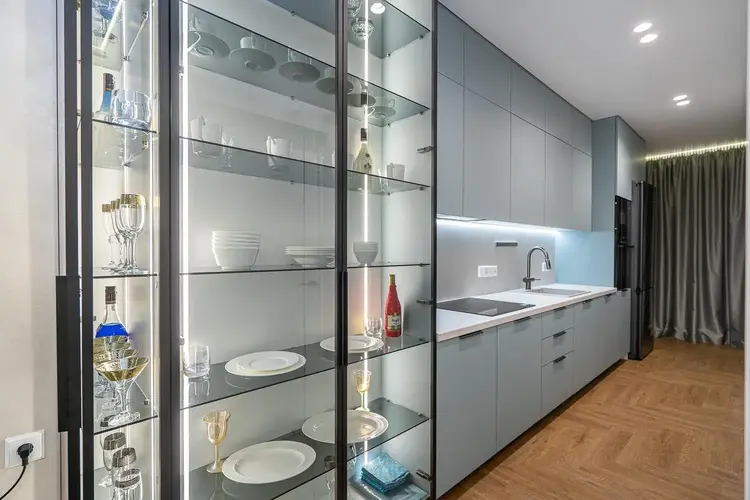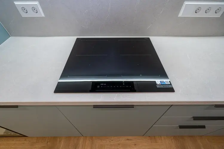 - Встроенная кухня оборудована премиальной встроенной техникой Bosch: индукционная панель, духовой шкаф, СВЧ, холодильник и посудомоечная машина.