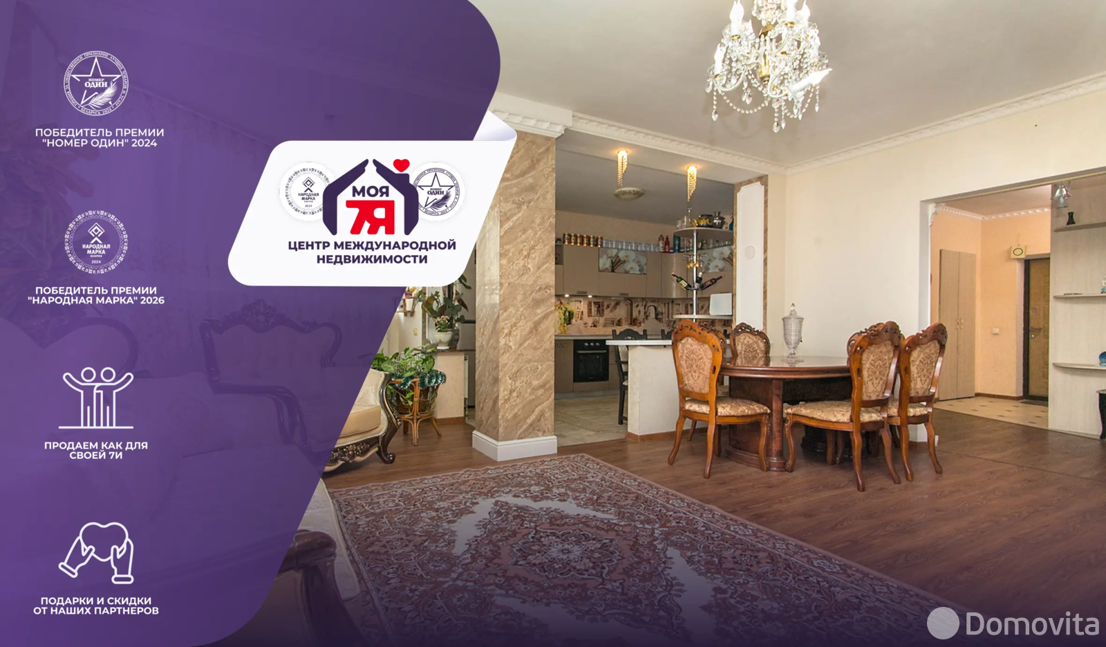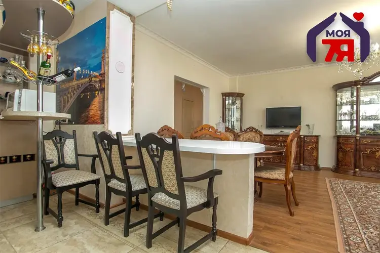 Просторная квартира с огромной гостиной 41м2, 3 отдельные комнаты вблизи Комсомольского озера Просторная 115 м² по СНБ квартира с четырьмя комнатами, двумя санузлами, гардеробной, встроенной кухней рядом с Комсомольским озером и парками – идеальное жильё для большой семьи. Адрес: г. Минск, ул. Каховская д. 26 - Возможен обмен на квартиру меньшей площади в Минске или дом, вблизи Минска -Четырёхкомнатная квартира расположена на девятом этаже 19-этажного дома. -Общая площадь квартиры составляет 115 квадратных метров по СНБ (жилая площадь 67,2 квадратных метра) – просторное пространство, позволяющее комфортно жить большой семье или разместить гостей. -Удобная планировка включает четыре просторные комнаты различного назначения – спальни, детские комнаты, кабинет, гостиную. -Кухня объединена с жилой комнатой, создавая открытое пространство 41м2, где семья собирается вместе. Есть удобное место для организации обеденной зоны, где за столом могут разместиться все члены семьи и гости. На кухне установлен современный кухонный гарнитур со встроенной техникой – всё органично интегрировано в интерьер. Кухня готова к готовке и приёму гостей в торжественных случаях. -Квартира отличается качественным ремонтом в гостиной, выполненным со вкусом и вниманием к деталям. Окна ПВХ со стеклопакетами гарантируют теплоизоляцию и защиту от городского шума. Качественная металлическая входная дверь обеспечивает надёжную защиту и безопасность. -В коридоре расположены два практичных элемента: вместительный шкаф-купе с зеркальной дверью, который визуально расширяет пространство и обеспечивает место для хранения верхней одежды и обуви, и отдельная гардеробная комната, где удобно хранить сезонные вещи и предметы гардероба, поддерживая порядок во всей квартире. -Квартира имеет два санузла – редкий и ценный вариант, обеспечивающий комфорт каждому члену семьи, особенно в утренние часы. -Кирпичный 19-этажный дом 2006 года постройки. Дом оснащён тремя лифтами: двумя пассажирскими для удобного передвижения жильцов и одним грузовым для перемещения крупногабаритных грузов, что значительно облегчает жизнь. -Благоустроенный двор с детской площадкой и парковочными местами. Периметр территории полностью огорожен шлагбаумом, что обеспечивает контролируемый доступ и безопасность. Под домом расположен паркинг для жильцов дома. Видеонаблюдение 24/7 гарантирует безопасность жильцов и их имущества. На входе работает консьерж, который помогает жильцам и контролирует входящих гостей. - Отличная наземная транспортная сеть с автобусами, троллейбусами и маршрутками обеспечивает связь со всеми районами города. -Инфраструктура района развита на высочайшем уровне. Магазины различных форматов находятся в шаговой доступности, от продовольственных супермаркетов до специализированных лавок. Банковские отделения, детские сады, школы СШ37 с повышенным изучением немецкого языка и СШ35, гимназии №3 и гимназии №34 с повышенным изучением французского языка, парикмахерские и салоны красоты, дворец Молодежи, ТЦ «Замок», Мир фитнеса, Храм Марии Магдалины. -Рядом с домом расположены живописные зоны отдыха: Комсомольское озеро, парк Победы и парк Дружбы народов предлагают прекрасные маршруты для пеших прогулок и занятий спортом, Киевский сквер создаёт атмосферу уюта и спокойствия. Зелен