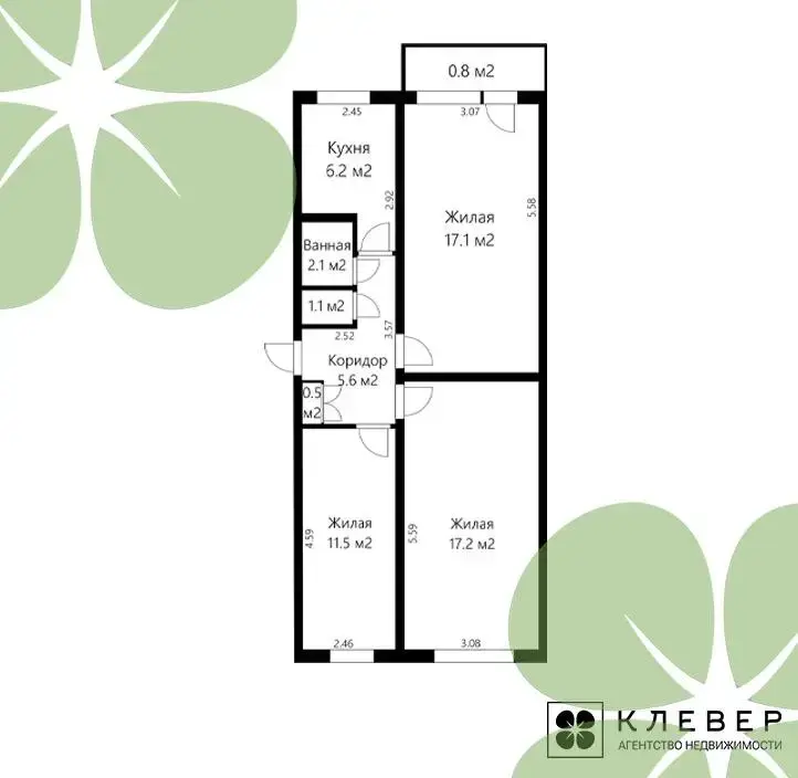 Из окон открывается вид на зеленую зону. Квартира выходит на две стороны.