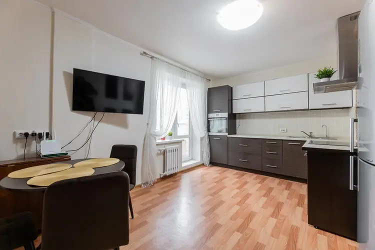 Сделан современный ремонт с использованием качественных материалов: встроенная кухня с бытовой техникой, на полу – паркет и плитка, современные санузлы!