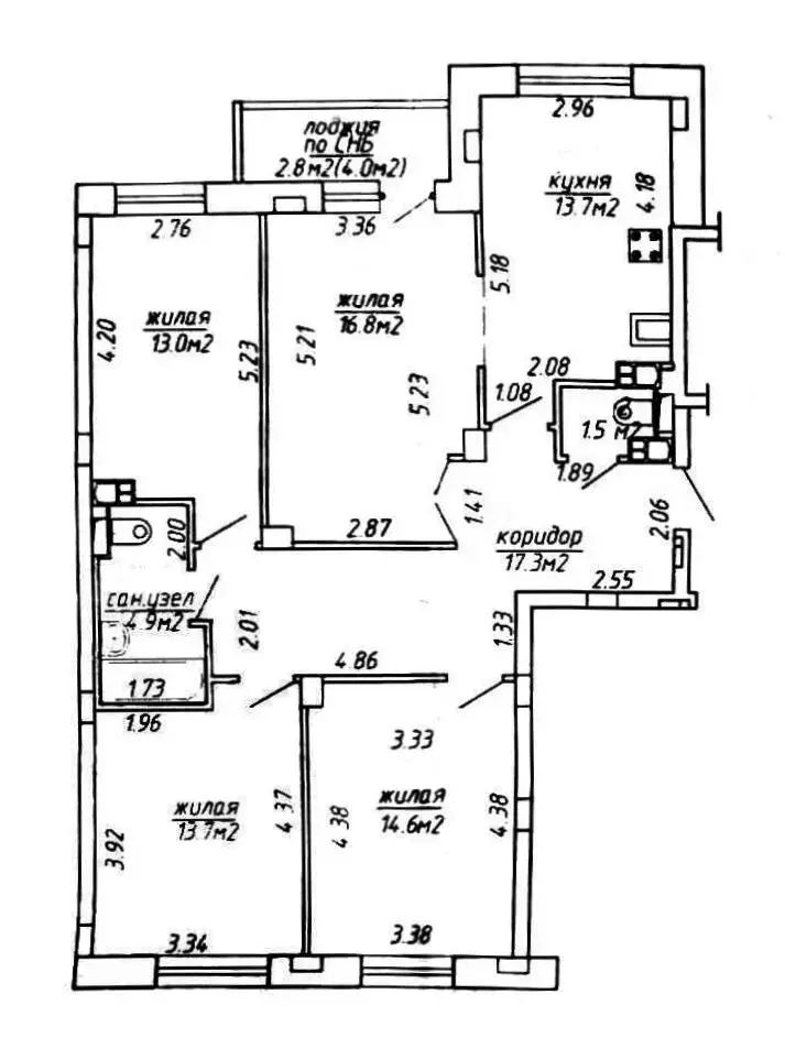 Общая площадь квартиры по СНБ: 98,3 м кв, жилая площадь 58.1м кв.