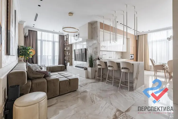 - В окружении находятся парк Писателей, Национальная библиотека Беларуси, супермаркеты, фитнес-клубы, спа-центры с салонами красоты, рестораны и кафе — всё необходимое для комфортной жизни и отдыха.