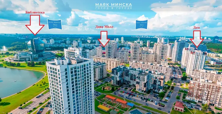 - ЖК «Маяк-Минска» расположен напротив Национальной библиотеки вдоль проспекта Независимости;