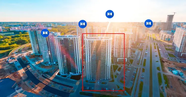 Спортивные площадки, вело парковки и благоустроенные дворы.