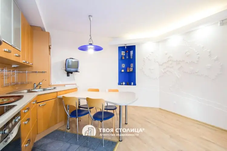 В продаже четырёхкомнатная квартира в малоэтажной застройке в центре Минска, в шаговой доступности от станции метро "Фрунзенская".Квартира полностью готова к проживанию - укомплектована мебелью и техникой.напольное покрытие: ламинат, керамическая плитка с системой "теплый пол"подвесные потолки с грамотно подобранным освещением создают атмосферу уюта и простора.стеклопакеты ПВХ, в том числе остекление балконавстроенная кухня с бытовой техникойсанузлы облицованы плиткойдве обустроенные гардеробныепросторная постирочная с современным оборудованием для стирки и сушкивходная металлическая дверь, межкомнатные двери из массиваКомфортный микроклимат в квартире позволяет поддерживать система кондиционирования воздуха.Для жильцов дома оборудован тренажерный зал, игровая комната, библиотека.Огороженная территория, видеонаблюдение, имеется место в подземном паркинге.Дом находится в самом востребованном и комфортном районе столицы. Рядом расположены многочисленные объекты сервисного обслуживания и досуга, учебные заведения, торговые, бизнес и медицинские центрыРазвитая транспортная сеть. У дома остановки общественного транспорта. В шаговой доступности станции метро: "Молодёжная", "Фрунзенская" и "Немига". Рядом кинотеатры, музеи, места для прогулок и активного отдыха, парки и скверы, набережная реки Свислочь. Живописные виды.Этот объект по достоинству оценят как активные современные молодые люди, стремящиеся к динамичной жизни, так и те, кто предпочитает размеренность и комфорт. Здесь каждый найдет для себя идеальное пространство для жизни и отдыха, обеспеченное всеми необходимыми удобствами для гармоничного существования.Не упустите шанс стать счастливым обладателем! Звоните, записывайтесь на просмотр! Прямая продажа. Поможем выгодно продать вашу квартиру для покупки этой. Расширенные консультации по покупке, продаже и обмену вашей квартиры на этот объект можно получить в Центральном офисе «Твоя столица" по адресу г. Минск, ул. Кирова, 8Смотреть подробнее ТОП-20 ДЕШЕВЫХ КВАРТИРБАЗА ПОКУПАТЕЛЕЙ – узнайте, кто готов купить вашу квартиру прямо сейчас!КАЛЬКУЛЯТОР СТОИМОСТИ ЖИЛЬЯ – онлайн- расчет стоимости вашей квартиры!ПЕРЕЕЗЖАЕМ В НОВОСТРОЙКУ- программа обмена старого жилья на новое. 2 сделки в 1 день!ПАРТНЕР-КРЕДИТ сопровождение кредитования для покупки и обмена «под ключ»ВАШ ВАРИАНТ- проверка квартир перед покупкой и оформление сделки, если вы нашли объект самостоятельно. ООО "Твоя столица", УНП 101136973, лицензия №02240/15 от 17.02.05г.