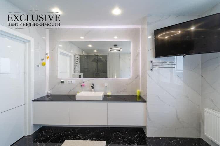 Квартира полностью оснащена эксклюзивной дизайнерской мебелью, бытовой техникой премиум класса. При ремонте были использованы только люксовые материалы.