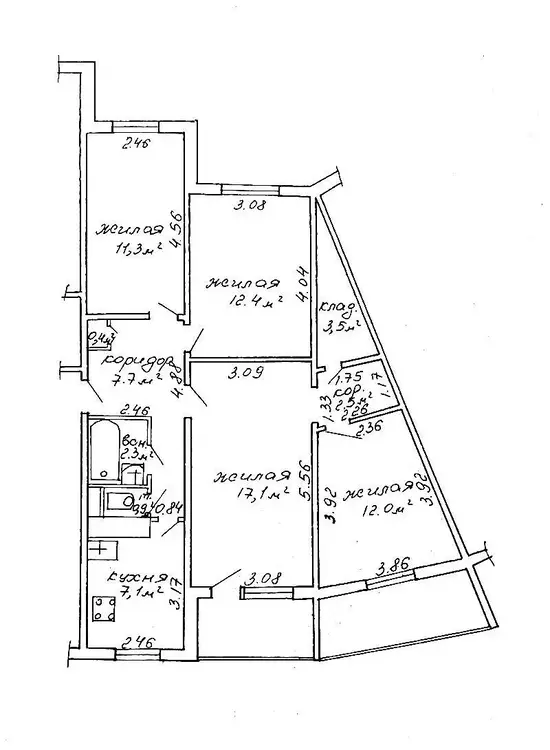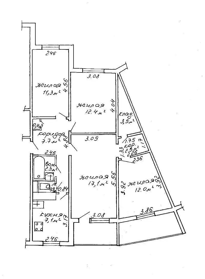Практичная планировка с общей площадью по СНБ 81.7 кв.м, жилой 52.8 кв.м и кухней 7,1 кв.м помогает рационально использовать пространство и распределить комнаты по назначению.