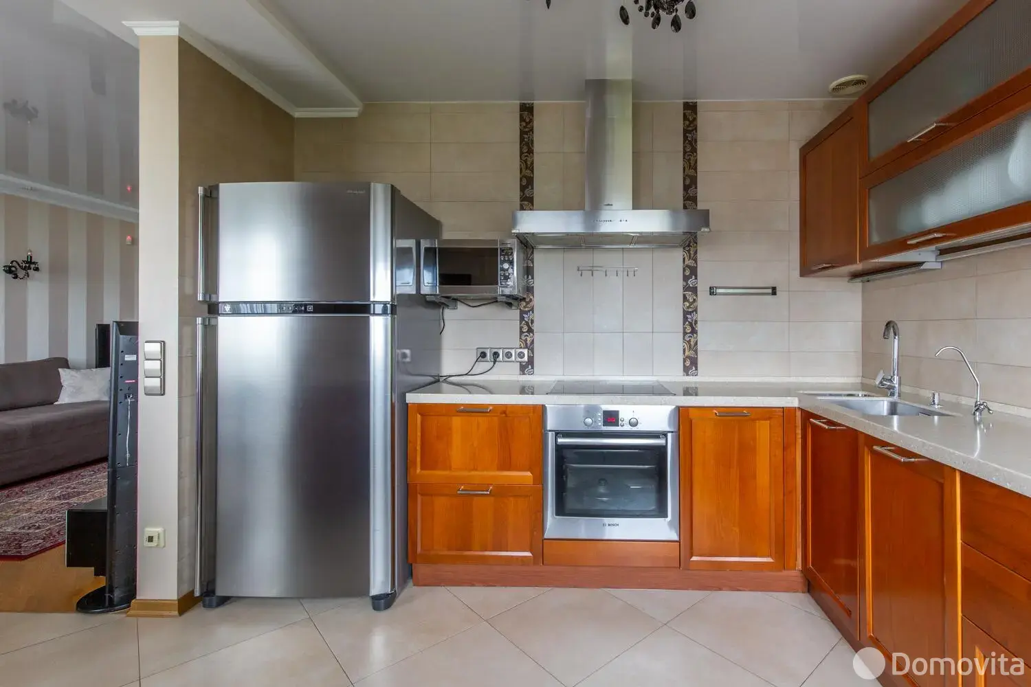 В квартире выполнен качественный ремонт: напольное покрытие - паркетная доска и плитка (с возможностью подогрева), межкомнатные двери из массива дерева, встроенная кухня(ольха) с необходимой бытовой техникой, включая посудомоечную, стиральную и сушильную машины.