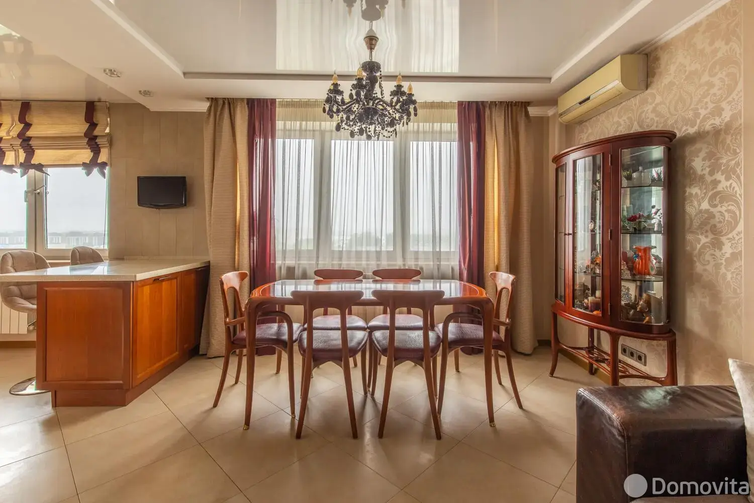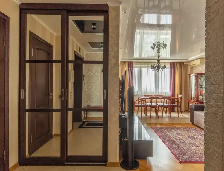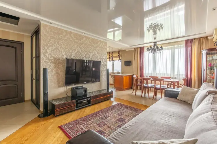 Установлен электрический камин с функцией обогрева, есть 2 гардеробные, шкафы купе. Мебель и техника, представления на фотографиях, входит в стоимость квартиры. Установлены кондиционеры (зона гостиной и спальни), а также фильтры очистки воды. Имеется оборудование для подключения сигнализации.