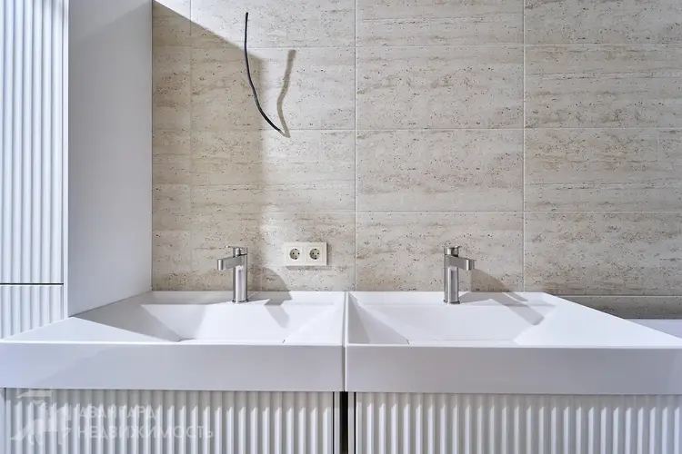 - В квартире выполнены основные ремонтные работы. На полу в жилых комнатах и коридоре уложен качественный ламинат, в мокрых зонах - плитка. Стены выровнены и окрашены, потолок подготовлен под монтаж натяжных потолков. Новая и продуманная электрика, предусмотрено много розеток и зон освещения (проект в комплекте). Разведена и установлена основная сантехника: сделаны выводы под умывальники, стиральную и сушильную машину, посудомоечную машину, установлена хорошая акриловая ванна.