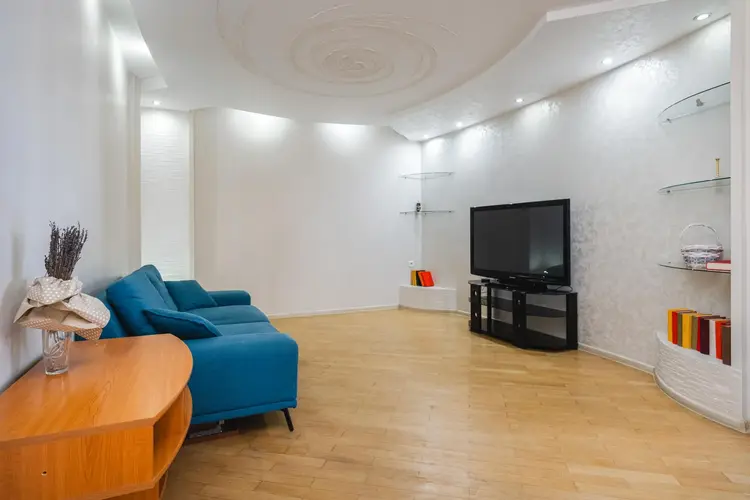 Отличный современный ремонт. Кухня из массива – производство Италия (рабочая поверхность – натуральный камень), венецианская штукатурка, декоративный камень, обои – Италия. Многоуровневые потолки с грамотно расположенным освещением. В санузлах – мозаика; полы – плитка, паркет.