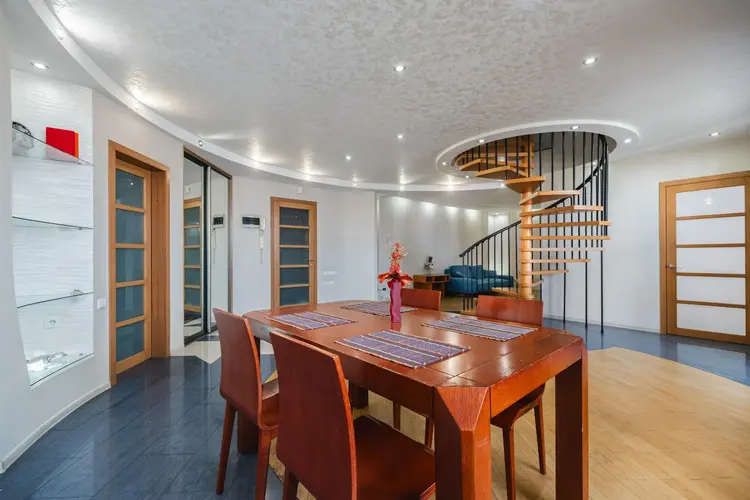 Идеально спланированная квартира общей площадью 170м2: первый уровень – большая гостиная с несколькими выделенными зонами, кабинет, кухня; второй – три спальни, гардеробная комната. В квартире: две большие лоджии и два санузла, расположенные на каждом этаже. Полы с подогревом.