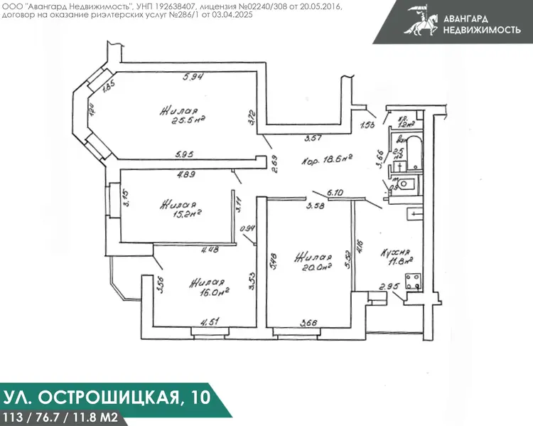 Частное унитарное предприятие «Дианэст», УНП 190124316, лицензия №02240/54 от 06.06.2005. Договор № 17/4 от 23.01.2025