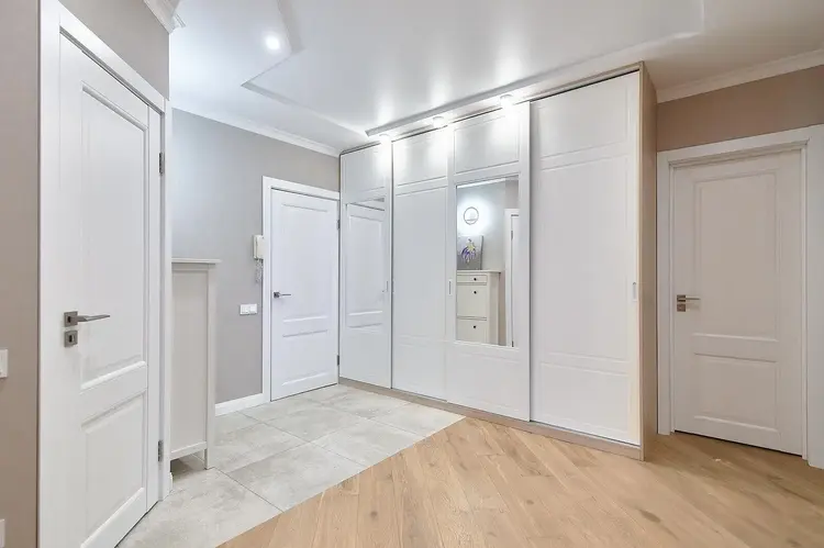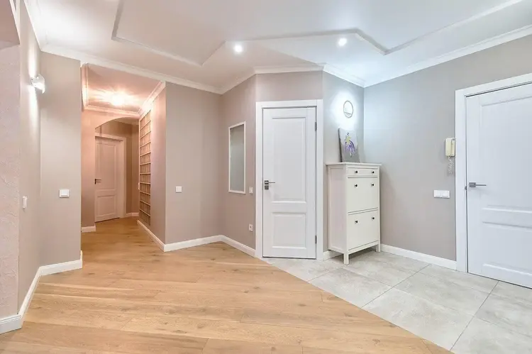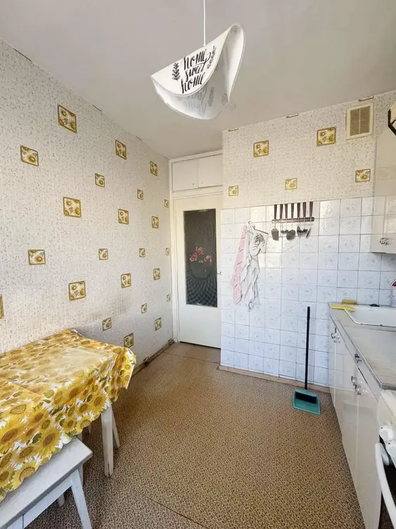 На полу уложен ламинат, который обладает высокой износостойкостью и практичностью. Все стены оклеены обоями, создающими уютную атмосферу. Металлическая входная дверь обеспечивает безопасность и надежность.