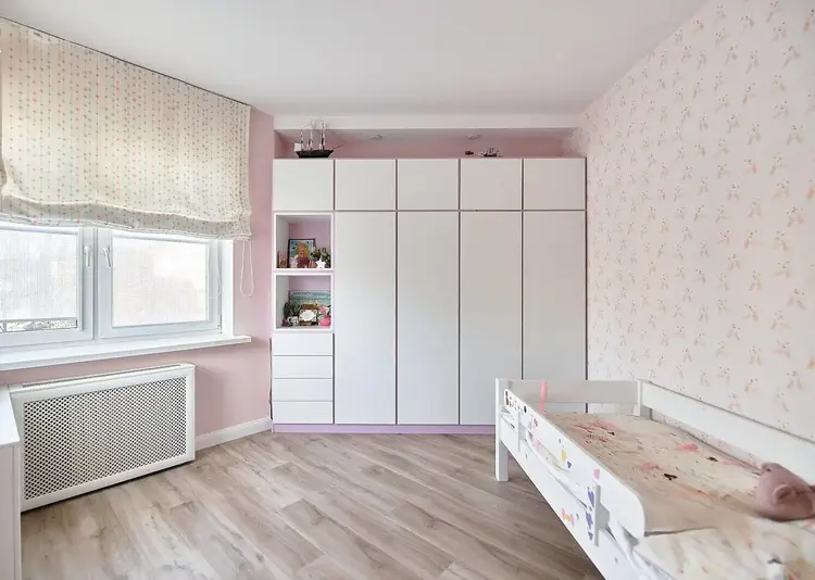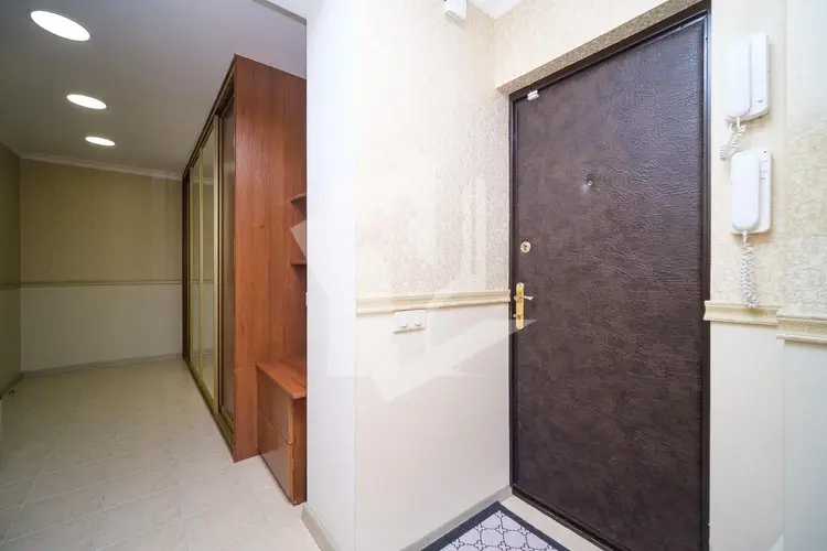 На полу уложен ламинат, который обладает высокой износостойкостью и практичностью. Все стены оклеены обоями, создающими уютную атмосферу. Металлическая входная дверь обеспечивает безопасность и надежность.