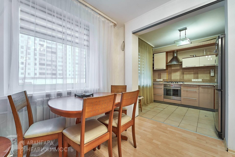 Жилая площадь квартиры 59.7м2, высота помещения составляет 2.52 м. Планировка с изолированными комнатами позволяет чётко разделить жилые зоны. Окна выходят во двор, что снижает уровень уличного шума. Четыре жилые комнаты: 12.3м2, 12.6м2, 14м2. и 17.1м2 с выходом на застекленную двойную лоджию, подходящую для хранения или дополнительного функционального пространства. Площадь кухни 6.8м2, оборудована гарнитуром, обеденной зоной и бытовой техникой. В наличии холодильник, газовая плита, духовой шкаф, что закрывает основные бытовые потребности. Санузел совмещён. Установлена металлическая входная дверь и двухкамерные стеклопакеты. В квартире официально согласована перепланировка. Выполнен качественный ремонт, состояние позволяет заехать без дополнительных вложений.