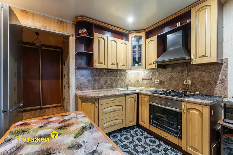 В квартире остается кухня со встроенной бытовой техникой и встроенные шкафы в коридоре.