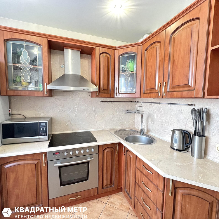 В квартире остается кухня с бытовой техникой, шкафы-купе в коридоре.