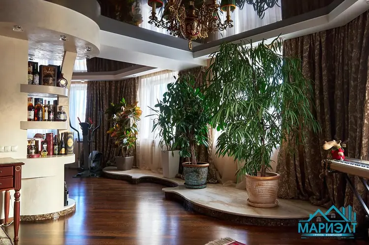 В квартире произведена и узаконена перепланировка- кухня, гостиная и комната отдыха с камином объединены в единое пространство.
