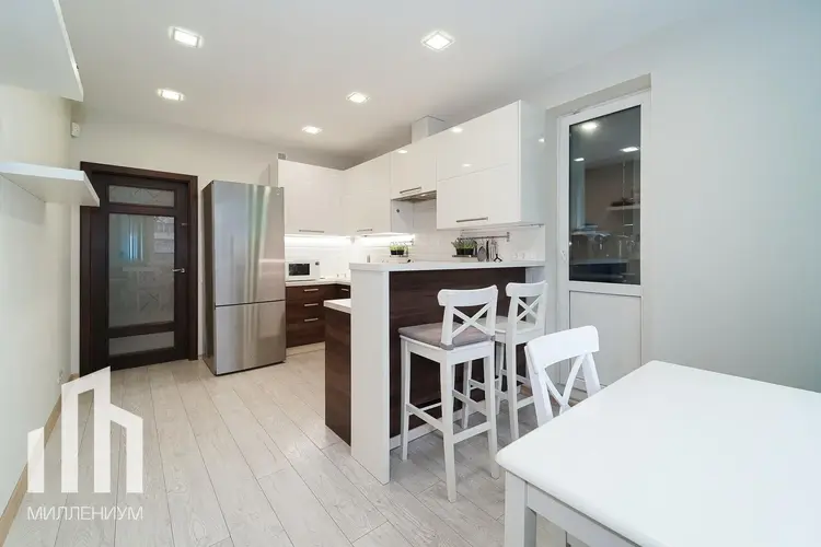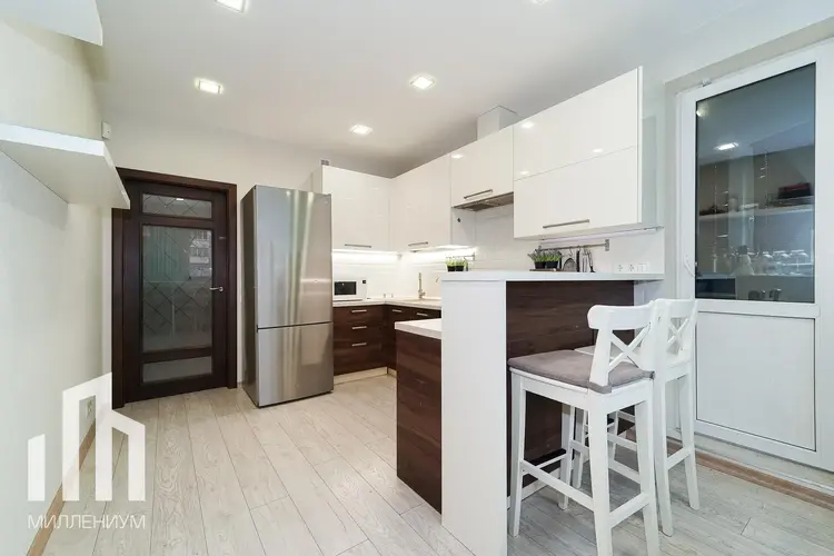 Советский район в котором расположена квартира считается одним из лучших районов в Минске. Экология, транспортное сообщение, инфраструктура – все соответствует высоким требованиям современного человека. До парка Челюскинцев и Ботанического сада около 2,5 км. Это любимое место минчан для развлечений и отдыха. Две станции метро в радиусе двух километров. Множество магазинов, банки, гимназия №6, поликлиника №13 – в шаговой доступности.
