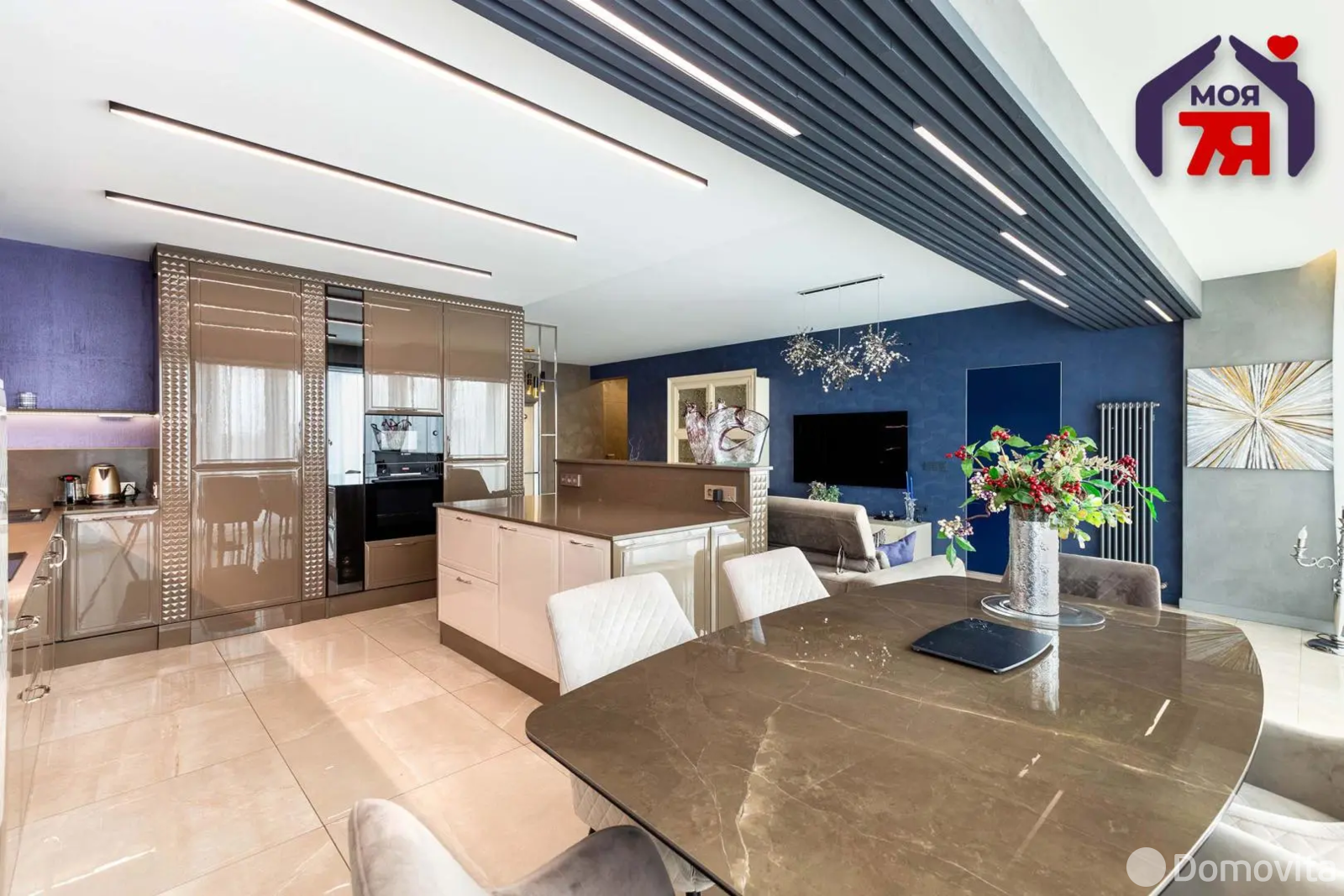 - Грамотно спланированное пространство и использование высококачественных материалов и техники премиум-класса создают атмосферу изысканности и комфорта.