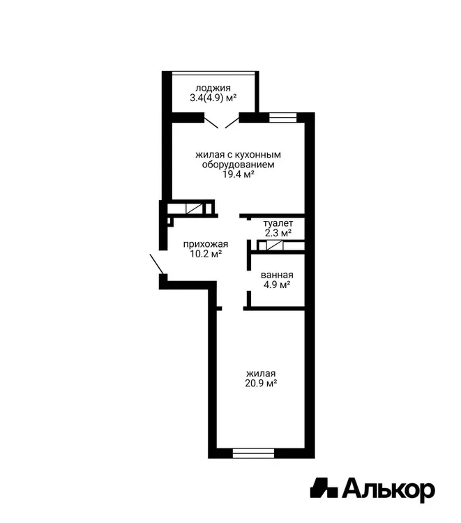 • Кухня-гостиная: Просторная, 42 м2, с выходом на балкон — идеальное место для семейных вечеров.