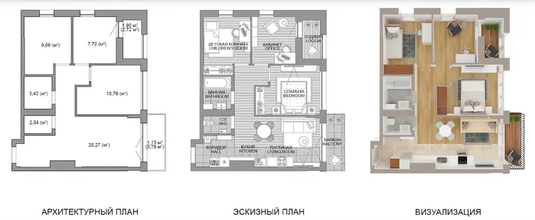 Площади квартир - от 28 до 64 м2. Свободные планировки позволяют создать пространство под любой сценарий жизни: