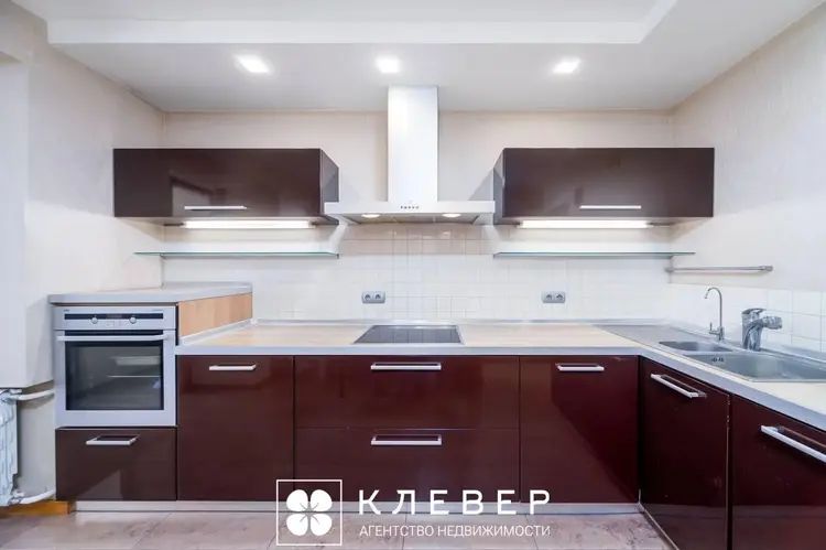 Всё включено: Остается кухонный гарнитур со встроенной техникой (посудомойка, духовой шкаф, варочная панель, вытяжка) и вместительные шкафы-купе.