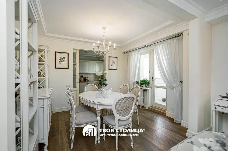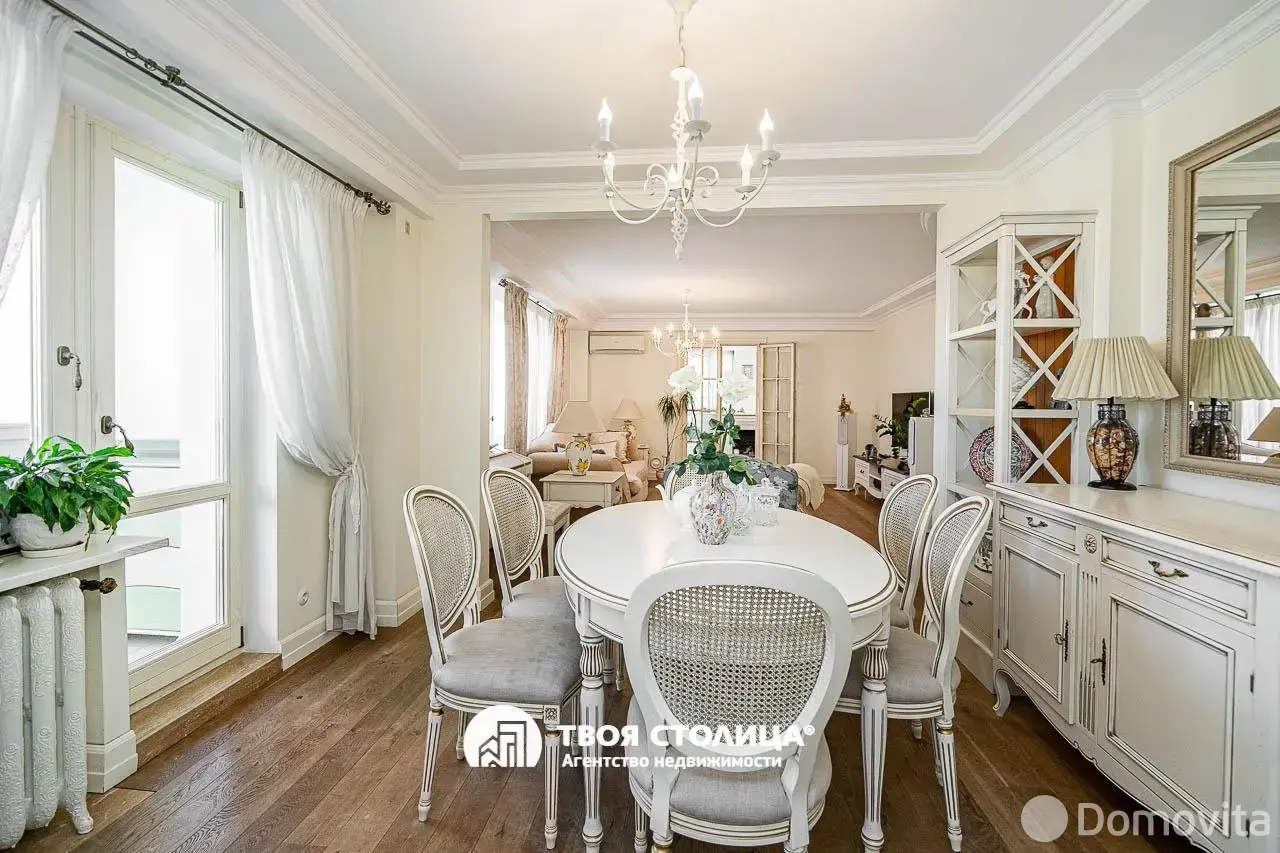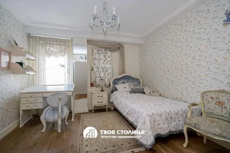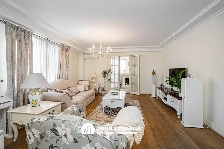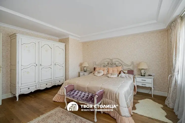 Окунитесь в атмосферу роскоши и уюта!Предлагаем вашему вниманию великолепную пятикомнатную квартиру в самом сердце города, где элегантность встречается с комфортом. Здесь каждая деталь продумана до мелочей, создавая неповторимую атмосферу изысканности.Дизайнерский интерьер в стиле Прованс очаровывает своей нежностью и теплом. Окна со стеклопакетами из мореного дуба наполняют пространство естественным светом, а дубовый паркет под ногами дарит ощущение тепла и уюта.Мебель, изготовленная на заказ в Италии из ценных пород дерева, подчеркивает безупречный вкус владельцев. Мраморные полы на балконах и итальянская мозаичная плитка Сквирелл добавляют нотку роскоши.В квартире установлена эксклюзивная итальянская сантехника Nicolazzi и чугунные батареи Tiffany с изысканным дизайном. Кухня оборудована встроенной техникой Smeg, что делает процесс приготовления пищи настоящим удовольствием.Вечерами вы сможете наслаждаться теплом и уютом, сидя у биокамина из натурального итальянского камня Травертин. Множество уникальных предметов интерьера со всех уголков мира придают квартире неповторимый характер.В отделке использованы только дорогостоящие материалы, а эксклюзивные межкомнатные двери из массива с итальянской фурнитурой подчеркивают высокий статус жилья.Квартира располагает тремя лоджиями, двумя санузлами и множеством мест хранения. Для вашего комфорта установлены кондиционеры в каждой комнате и на лоджии.Идеальное расположение квартиры добавляет ей ценности: В шаговой доступности находится французская гимназия №8, СШ №72, признанная лучшей школой Минска.Рядом находится Ботанический сад и парк Челюскинцев, Дворец водного спорта – идеальные места для прогулок и активного отдыха.Всего 8 минут пешком до метро, что обеспечивает превосходную транспортную доступность.Множество ресторанов, кафе, магазинов и прочих объектов инфраструктуры сделают вашу жизнь максимально комфортной и удобной.Это не просто квартира, это произведение искусства, в котором хочется жить и наслаждаться каждым мгновением. Приглашаем вас на просмотр, чтобы лично оценить все преимущества этого уникального предложения!Примечание: площадь квартиры указана по СНБ.Смотреть подробнее ТОП-20 ДЕШЕВЫХ КВАРТИРБАЗА ПОКУПАТЕЛЕЙ – узнайте, кто готов купить вашу квартиру прямо сейчас!КАЛЬКУЛЯТОР СТОИМОСТИ ЖИЛЬЯ – онлайн- расчет стоимости вашей квартиры!ПЕРЕЕЗЖАЕМ В НОВОСТРОЙКУ- программа обмена старого жилья на новое. 2 сделки в 1 день!ПАРТНЕР-КРЕДИТ сопровождение кредитования для покупки и обмена «под ключ»ВАШ ВАРИАНТ- проверка квартир перед покупкой и оформление сделки, если вы нашли объект самостоятельно. ООО "Твоя столица", УНП 101136973, лицензия №02240/15 от 17.02.05г.