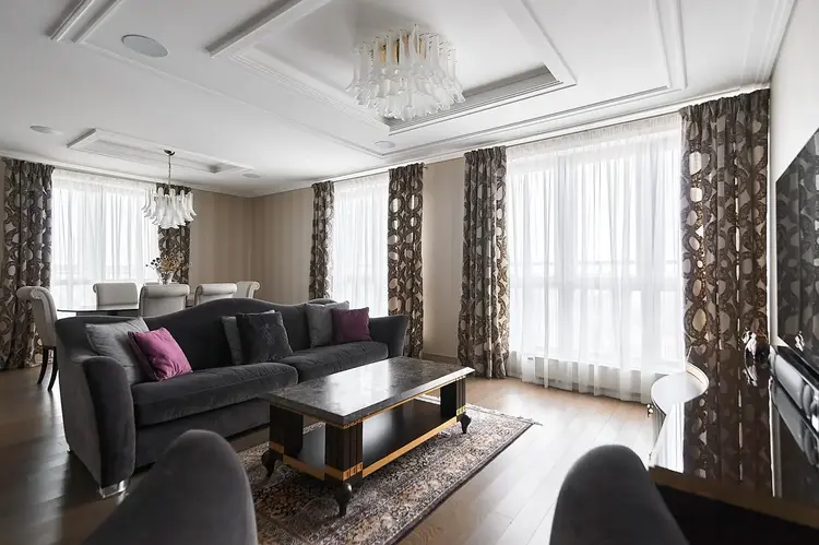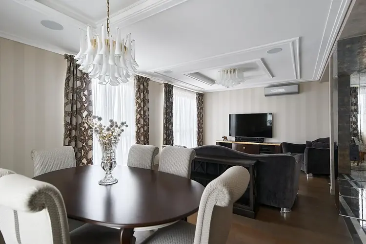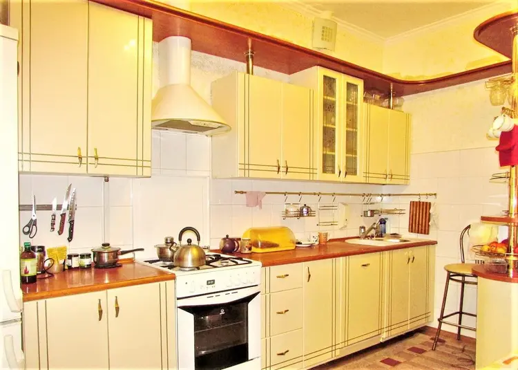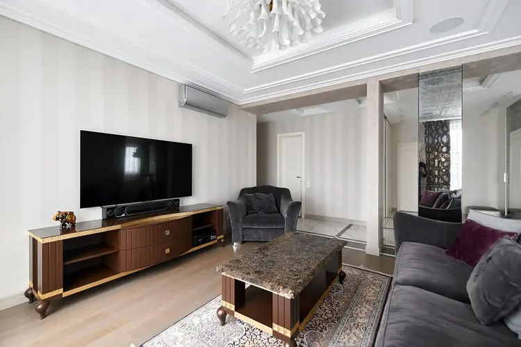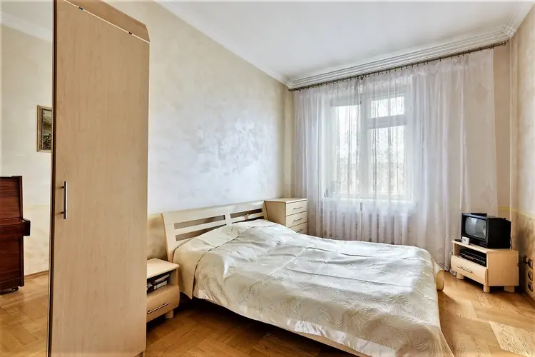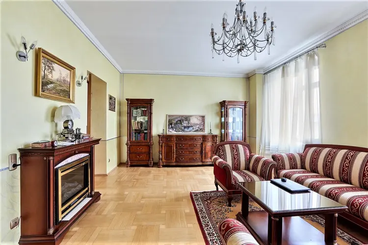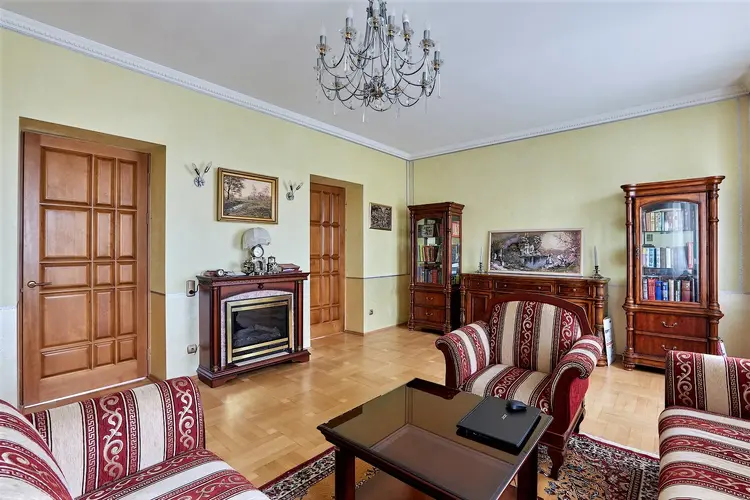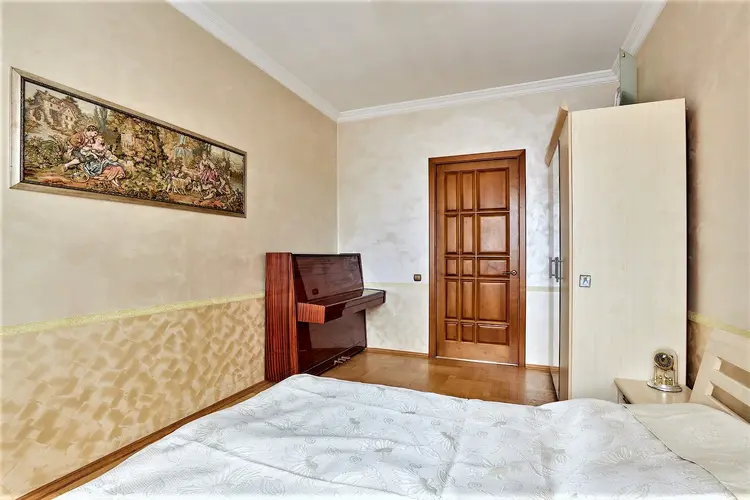 В доме железобетонные перекрытия. Заканчивается капремонт дома. В квартире специалистами был выполнен полный добротный ремонт с применением качественных импортных материалов. Просторные комнаты с шикарным видом из окон на главный проспект столицы. Площадь квартиры – 117,2 м2, жилая площадь – 79,3 м2 (в том числе гостиная - 28,7 м2), кухня – 15,2 м2. Высота помещений 3,03 м. МЕБЕЛЬ ЧАСТИЧНО Встроенная кухня с техникой и барной стойкой. Из кухни – кованый балкон с французскими окнами (вид во двор). В квартире два санузла: гостевой площадью 1,3 м2 и санузел площадью 7,0 м2 с ванной и душевой кабиной. Также в квартире на стенах декоративная штукатурка, пол - дубовый паркет, входная металлическая дверь, межкомнатные двери – массив ольхи, в прихожей - встроенный шкаф с огромными зеркалами. Окна квартиры выходят на север и на юг. Оптоволоконный кабель, сигнализация. Есть подвал.