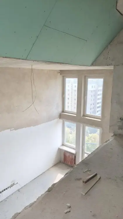 Продаётся просторная двухуровневая квартира со строительной отделкой.