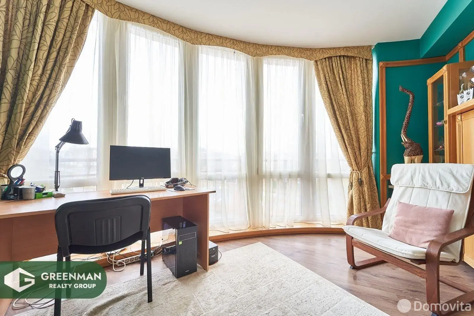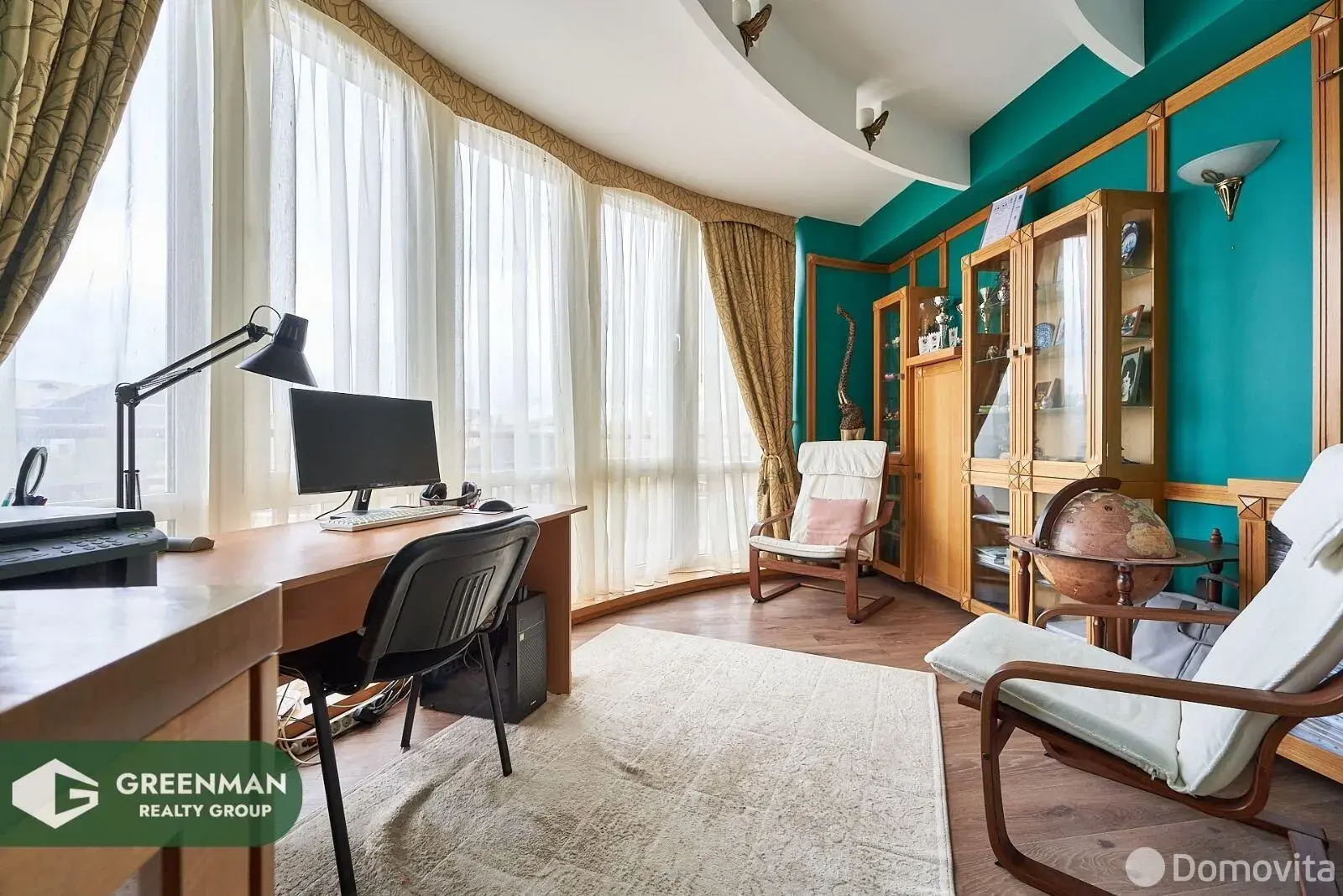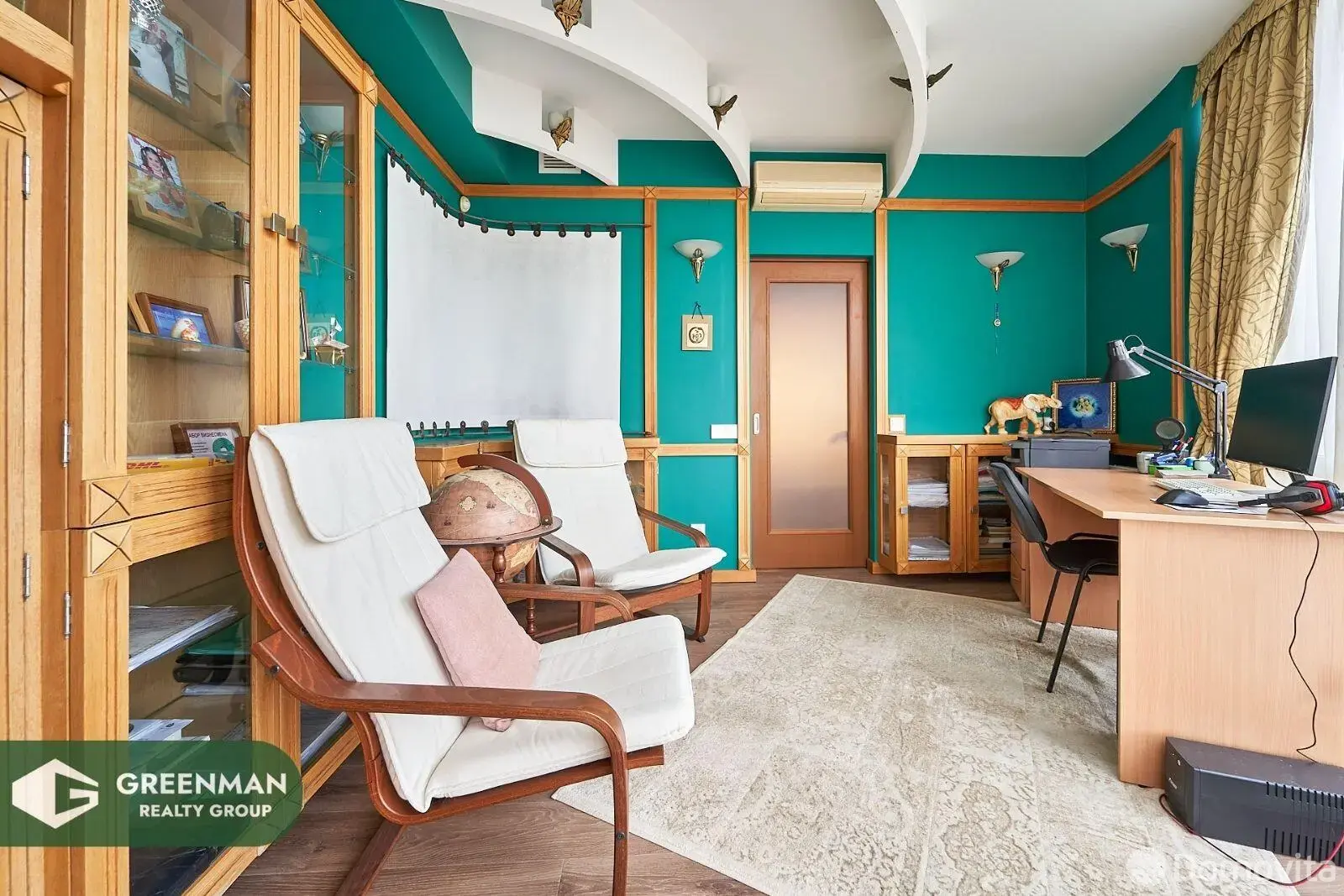 Просторная, светлая, обустроенная квартира (152,1 м2) с функциональной планировкой: 2 спальни (27,6 м2 и 18,5 м2); кабинет , в классическом стиле (11 м2); жилая комната (14,7 м2); кухня-гостиная (35 м2); гардеробная (8,1 м2); два сан.узла (11,2 м2 с сауной и 4 м2); большие коридоры; много мест хранения.