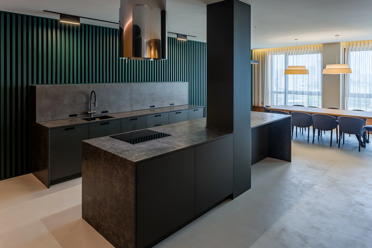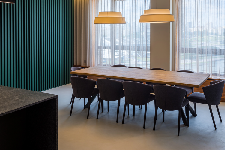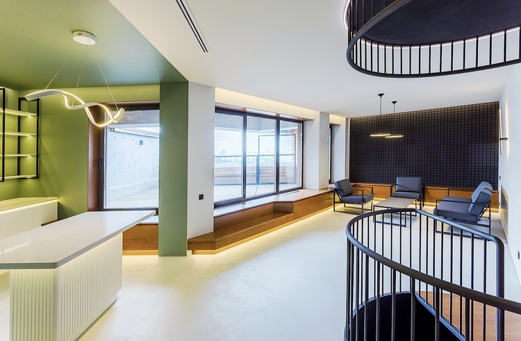 - лаунж-зона с выходом на просторную террасу 27 кв. м. с регулируемой стеклянной защитой, с которой открывается прекрасный вид на набережную реки Свислочь,