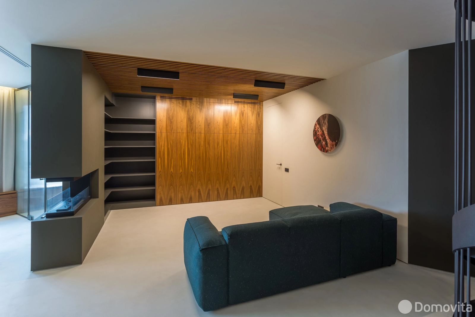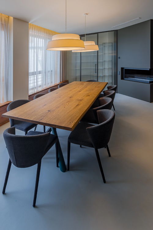 - гостиная с эко-камином, обеденная группа на 10 персон - итальянский дизайнерский дубовый стол, винный шкаф