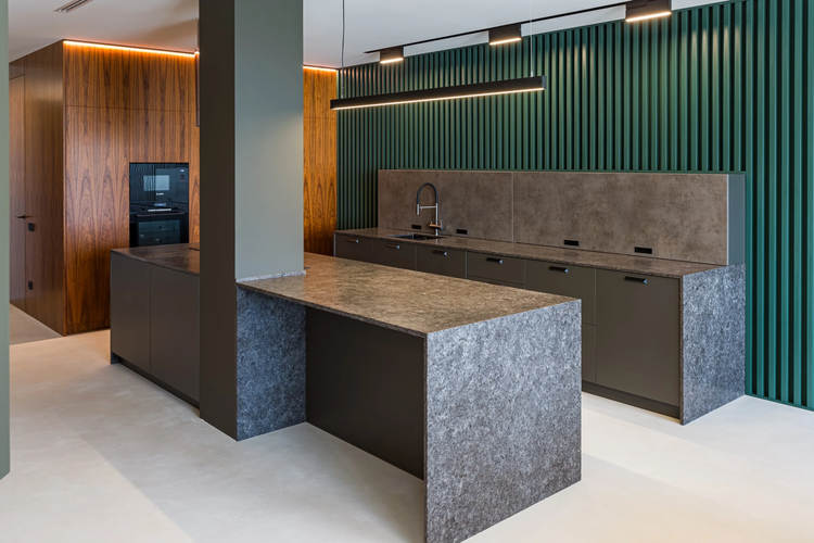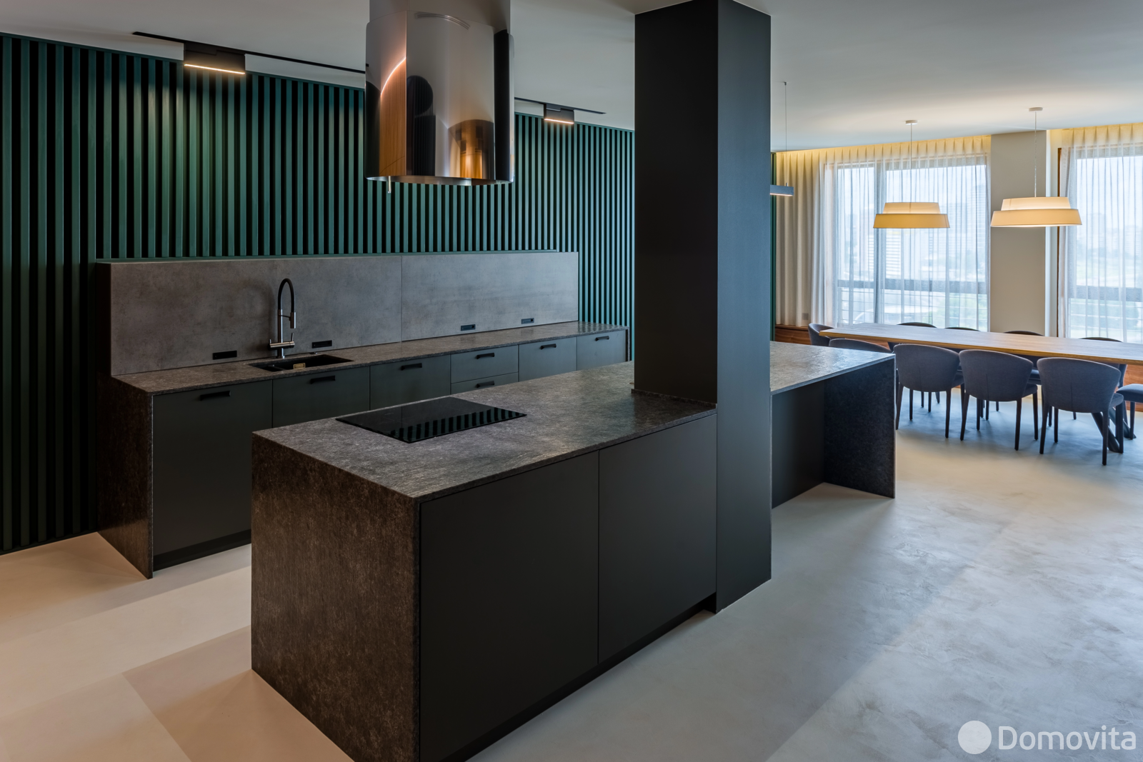 - просторная кухня со встроенной техникой: индукционная варочная панель и духовой шкаф BOSCH, вытяжка и посудомоечная машина BOSCH, встроенный фильтр для воды с обратным осмосом, раковина BLANCO с американским измельчителем пищевых отходов, встроенный холодильник и морозильник LIEBHERR, СВЧ печь, подсветка рабочей зоны и шкафа для посуды, оборудованный кухонный остров