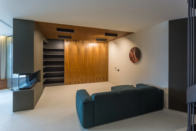 В квартире множество систем хранения и встроенной мебели, выполненной под заказ, бойлер на каждом этаже